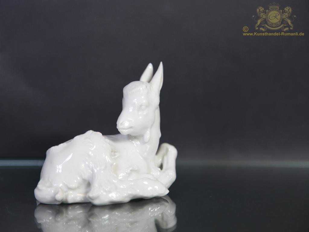 Allach Figur Zicklein liegend in weiss