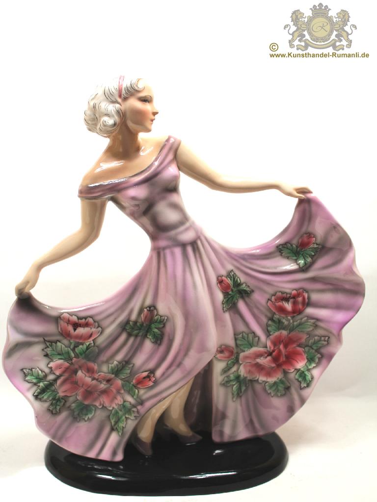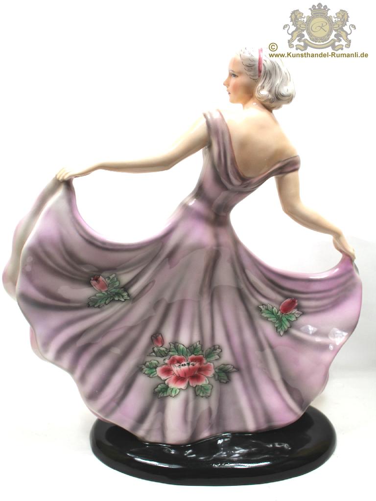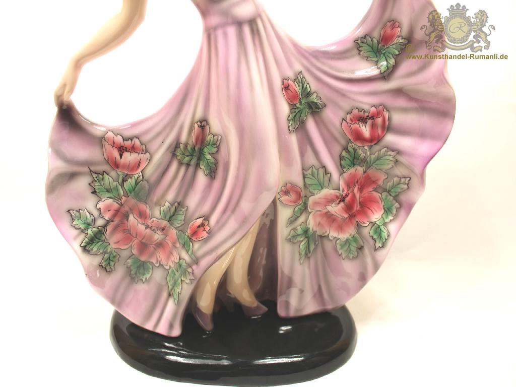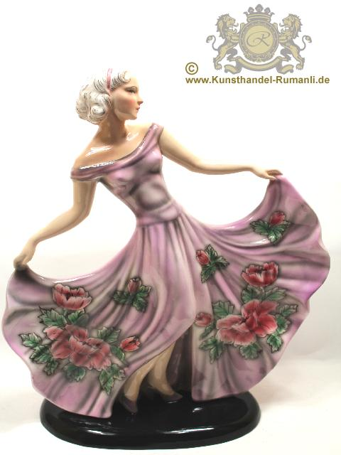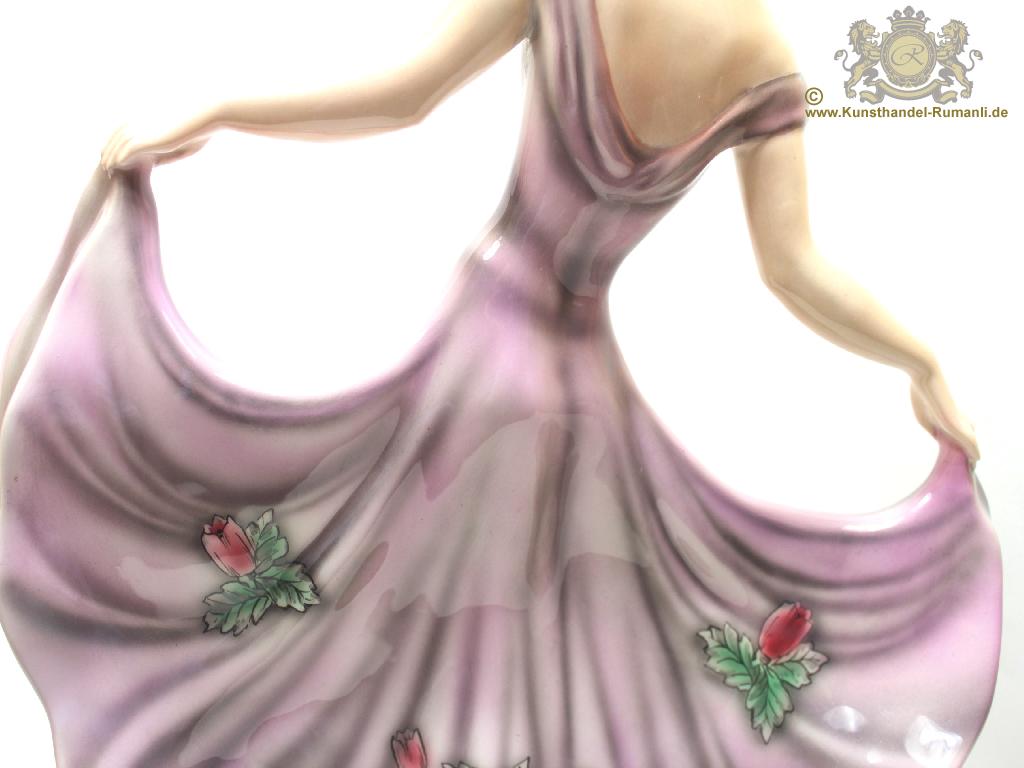 Große Goldscheider Wien Keramik Figur '' Tänzerin '' in Feiner Unterglasurmalerei.