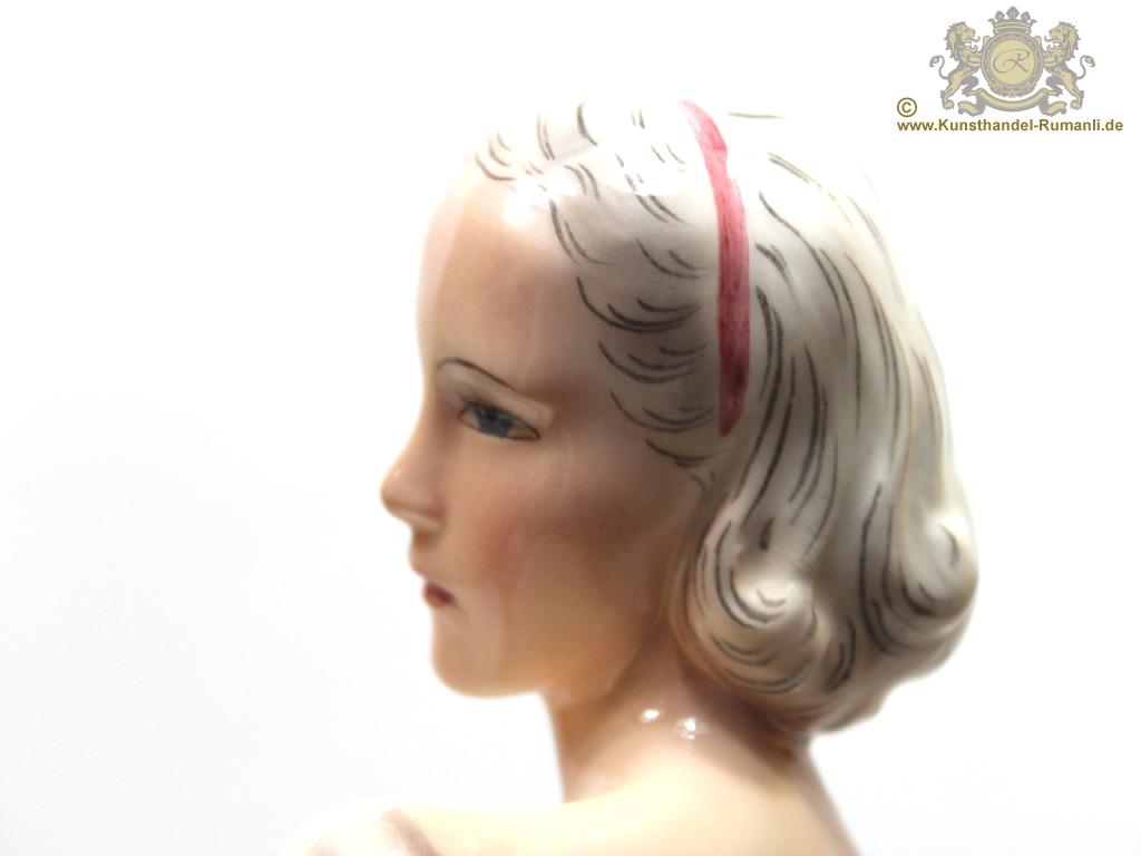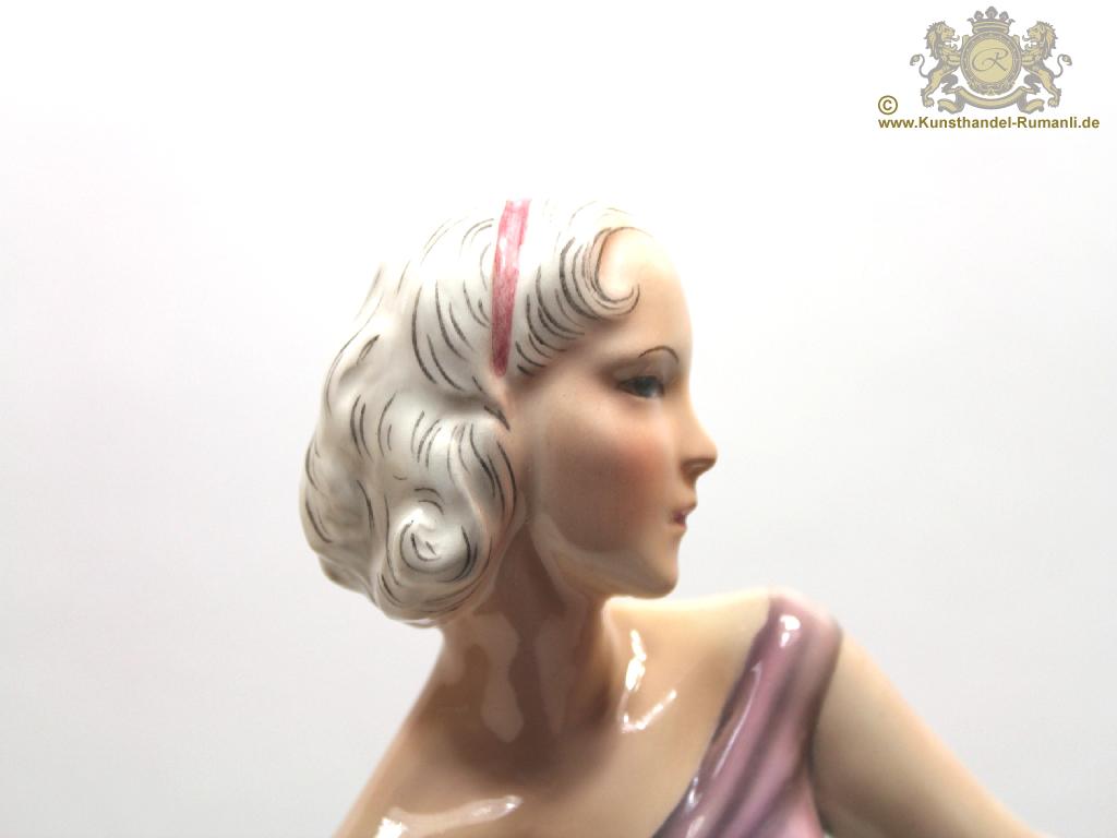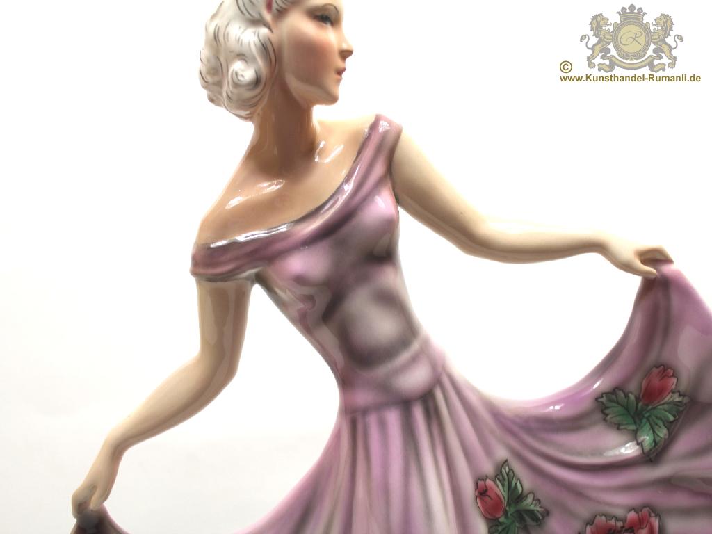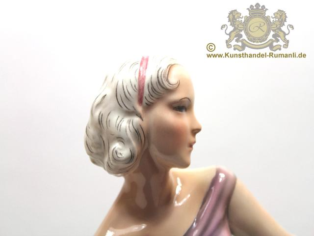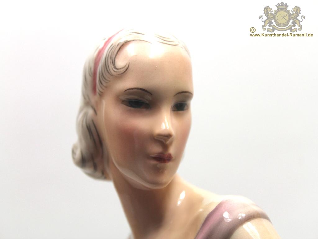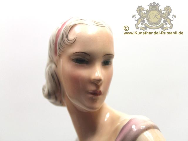 Große Goldscheider Wien Keramik Figur '' Tänzerin '' in Feiner Unterglasurmalerei.