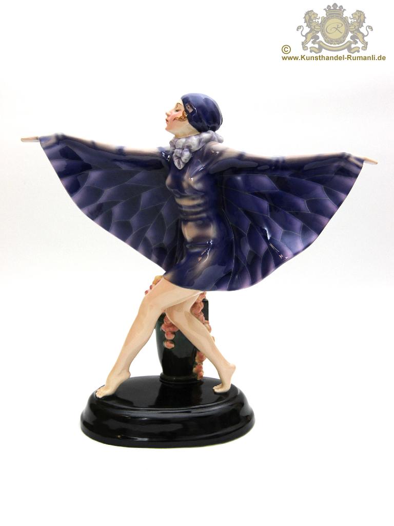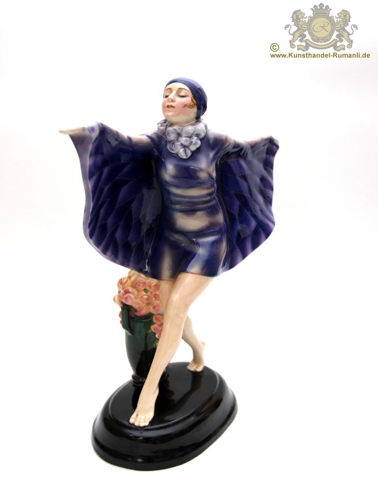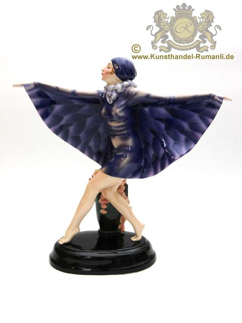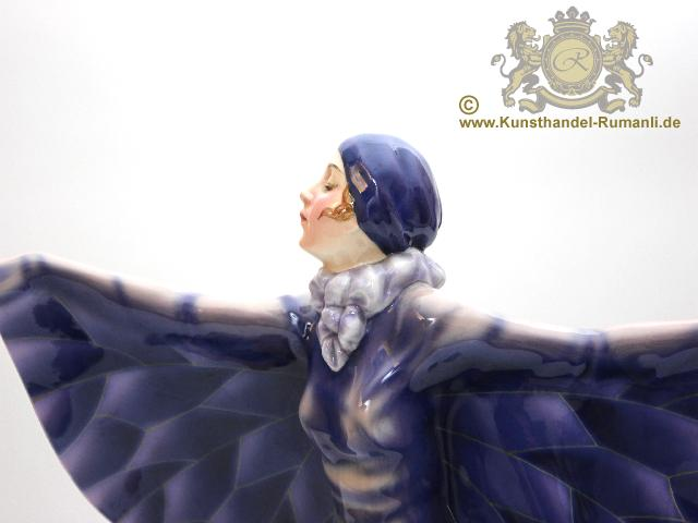 | Artikel:#6672 | Große Goldscheider Wien Figur als " Gefangener Vogel " von Josef Lorenzl