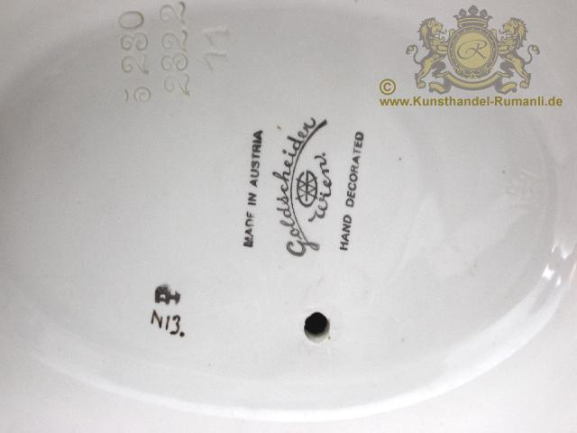 unter dem Boden bezeichnet MADE IN AUSTRIA, Goldscheider Wien, Hand Decorated, eingeprägte Nummer 5230/2322/11.