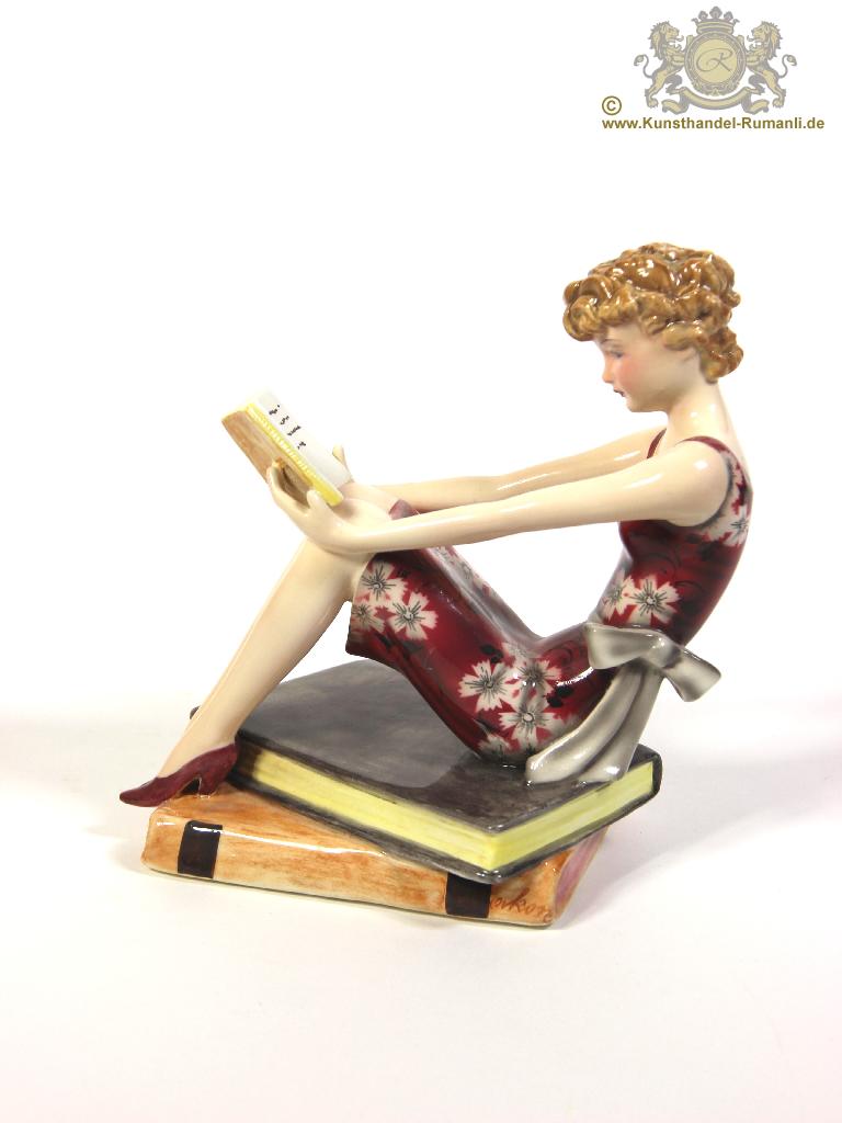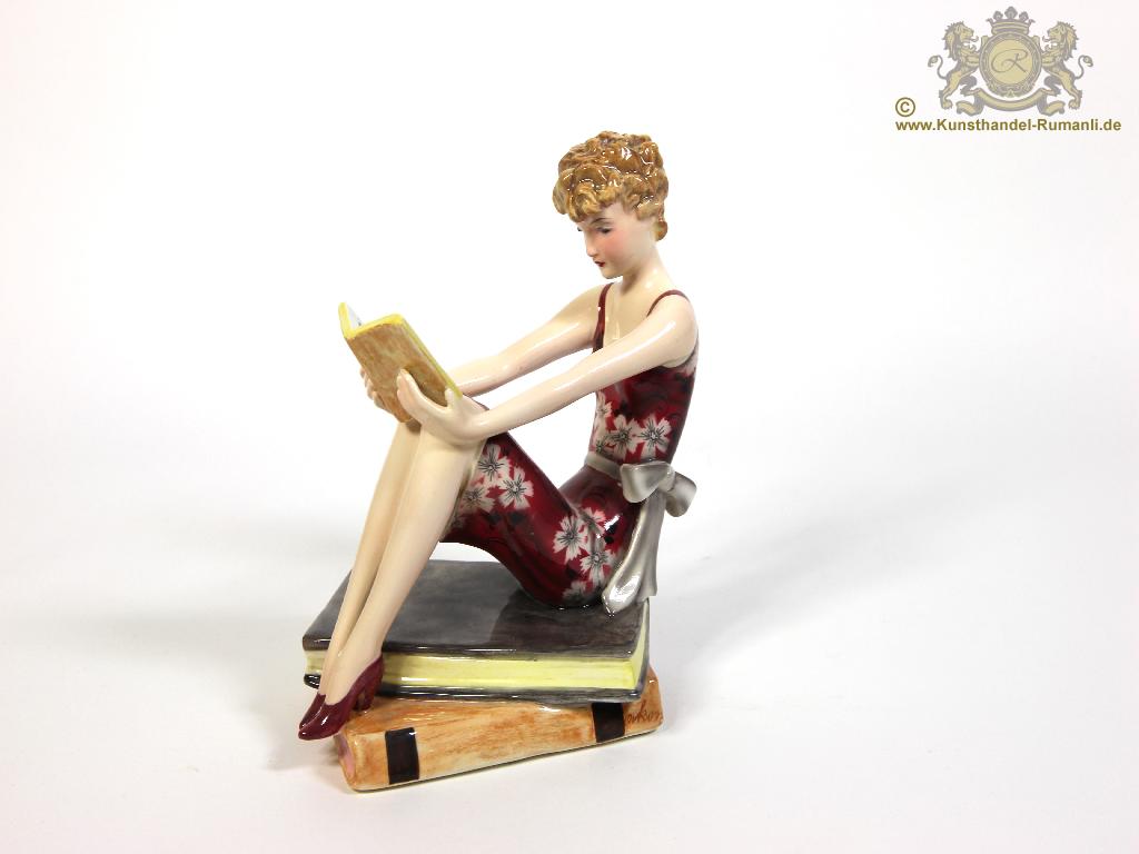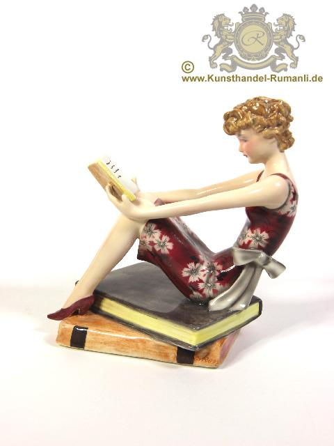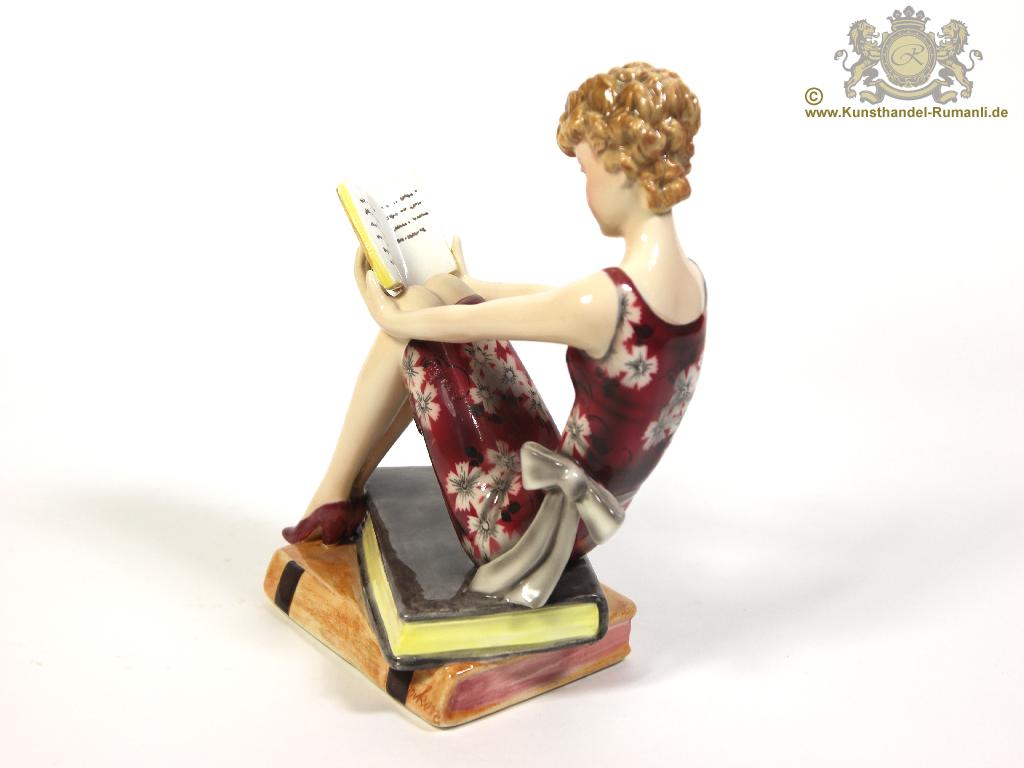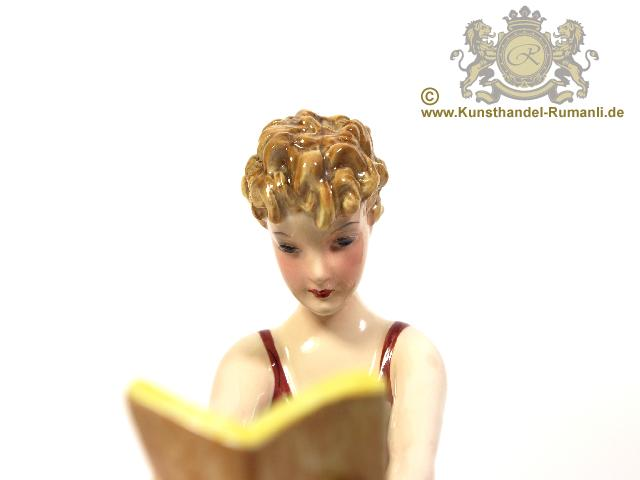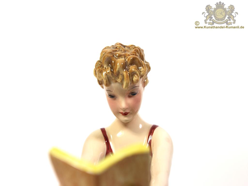 Seltene Goldscheider Wien Figur als " Sitzende lesende junge Dame " von Stephan Dakon